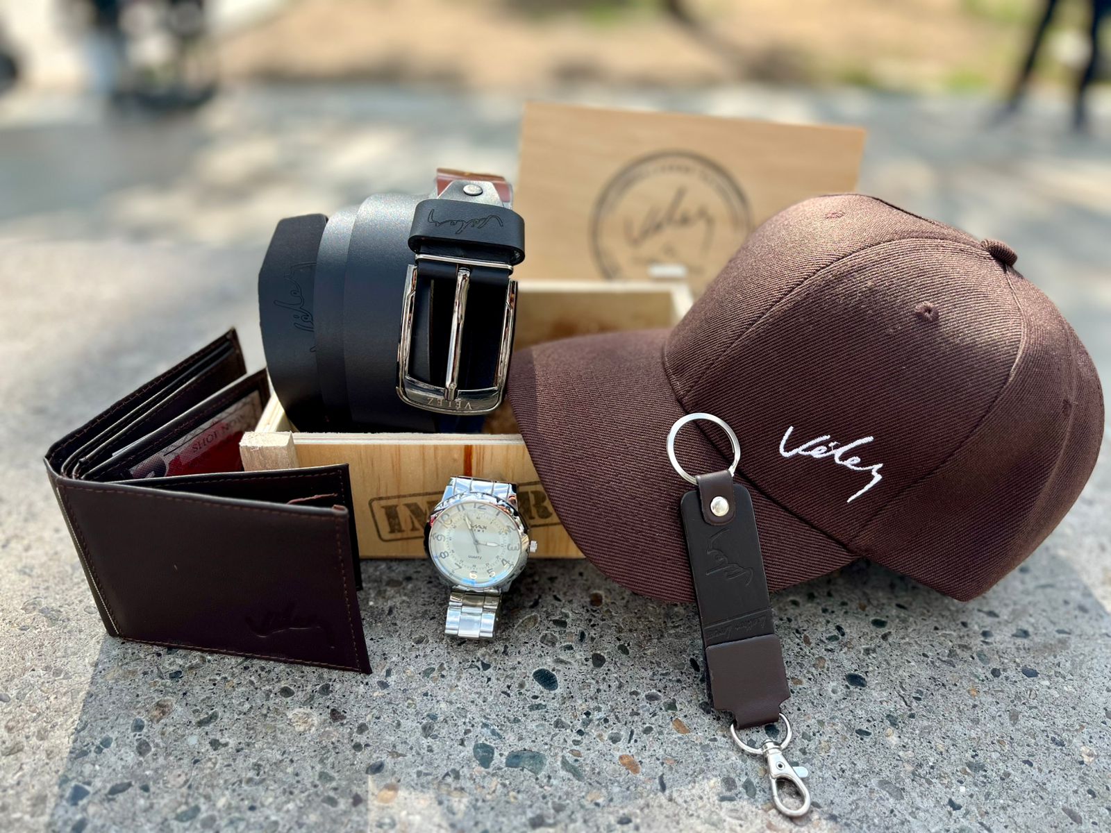 Combo Correa Cuero 100% + billetera cuero 100% + Reloj + Gorra Hombre + estuché contramarcado replica Vélez(CZ)