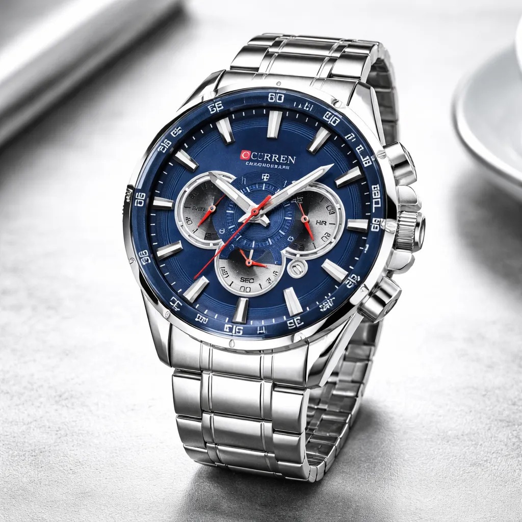 Eleva tu estilo con el Reloj Curren Cronógrafo, una pieza que combina precisión, carácter y sofisticación en cada detalle. Diseñado para hombres que valoran la elegancia moderna con un toque deportivo, este reloj no solo marca la hora, marca presencia.
