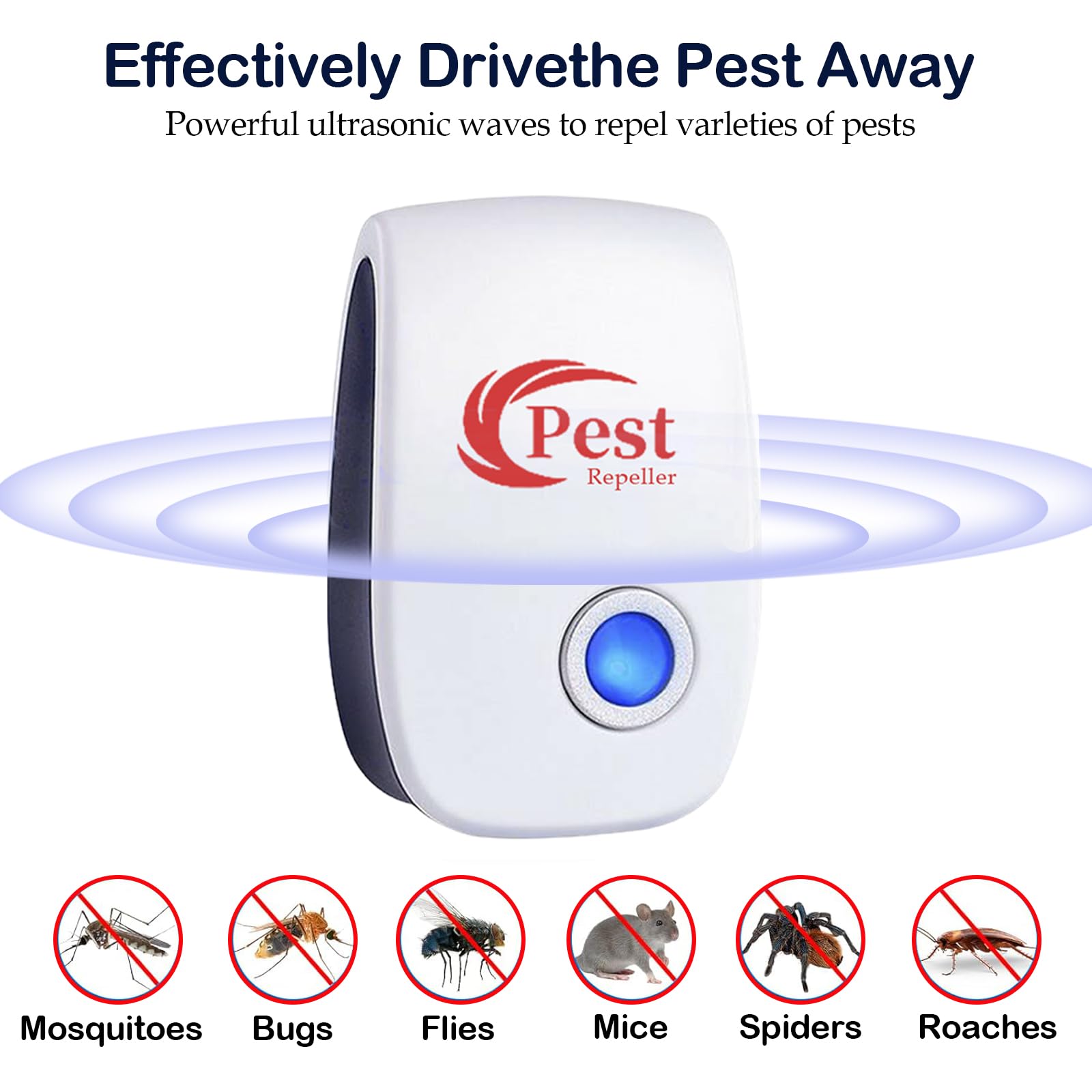 ★ Modos múltiples y fácil de usar- Simplemente conecte el repelente de plagas ultrasónico a la toma de corriente normal y luego se encenderá la luz LED. Asegúrese de instalarlo verticalmente a 80 ~ 120 cm del piso. El control de plagas ultrasónico emite ondas sonoras de baja frecuencia, que expulsan permanentemente a las plagas, los ratones, Mosquitos, cucarachas, arañas, moscas, pulgas, hormigas, roedores.
