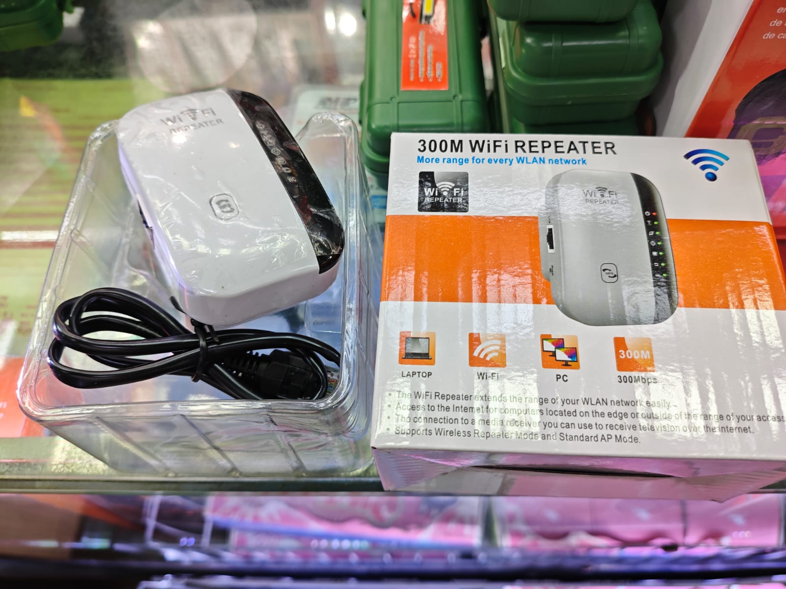 Con el access point Wireless-N Wifi repeater podrás interconectar redes inalámbricas logrando así una conexión estable y segura entre la red y el dispositivo de destino. Señal amplificada El repetidor wifi Wireless-N Wifi repeater 300mbps permitirá disfrutar de la conexión en una mayor cantidad de espacios. Este aparato extiende el rango de la señal para que puedas disfrutar de todos los equipos electrónicos de tu hogar o tu oficina sin inconvenientes. Conexión sin cables Con este equipo inalámbrico podrás desplazarte con total libertad por tu casa u oficina y disfrutar de la conexión sin estar pendiente de los cables. Más antenas, mejor señal Con este dispositivo, las paredes y techos no son un obstáculo: los múltiples receptores garantizan un mejor rendimiento en lugares con gran nivel de interferencia. Más velocidad Si lo que necesitas es un equipo que te permita realizar tus tareas diarias sin demoras, con una velocidad de 300 Mbps este dispositivo es perfecto para ti. Aviso legal • Apto para la red eléctrica de tu país.
