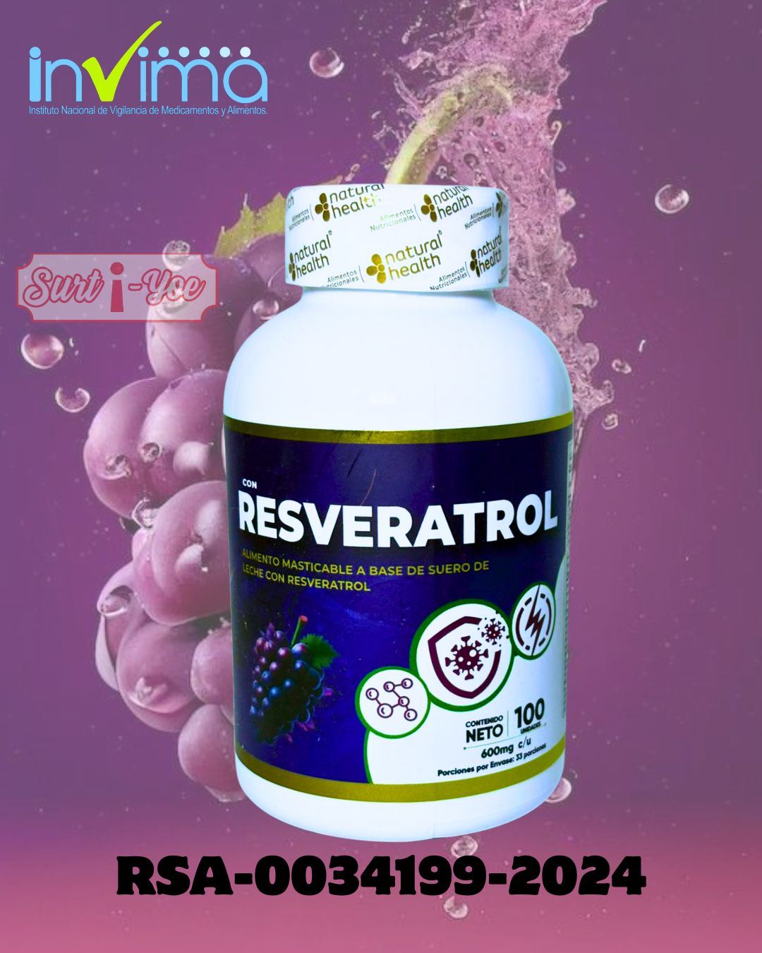 🍇 RESVERATROL MASTICABLE NATURAL HEALTH – PODER ANTIOXIDANTE PARA TU BIENESTAR DIARIO