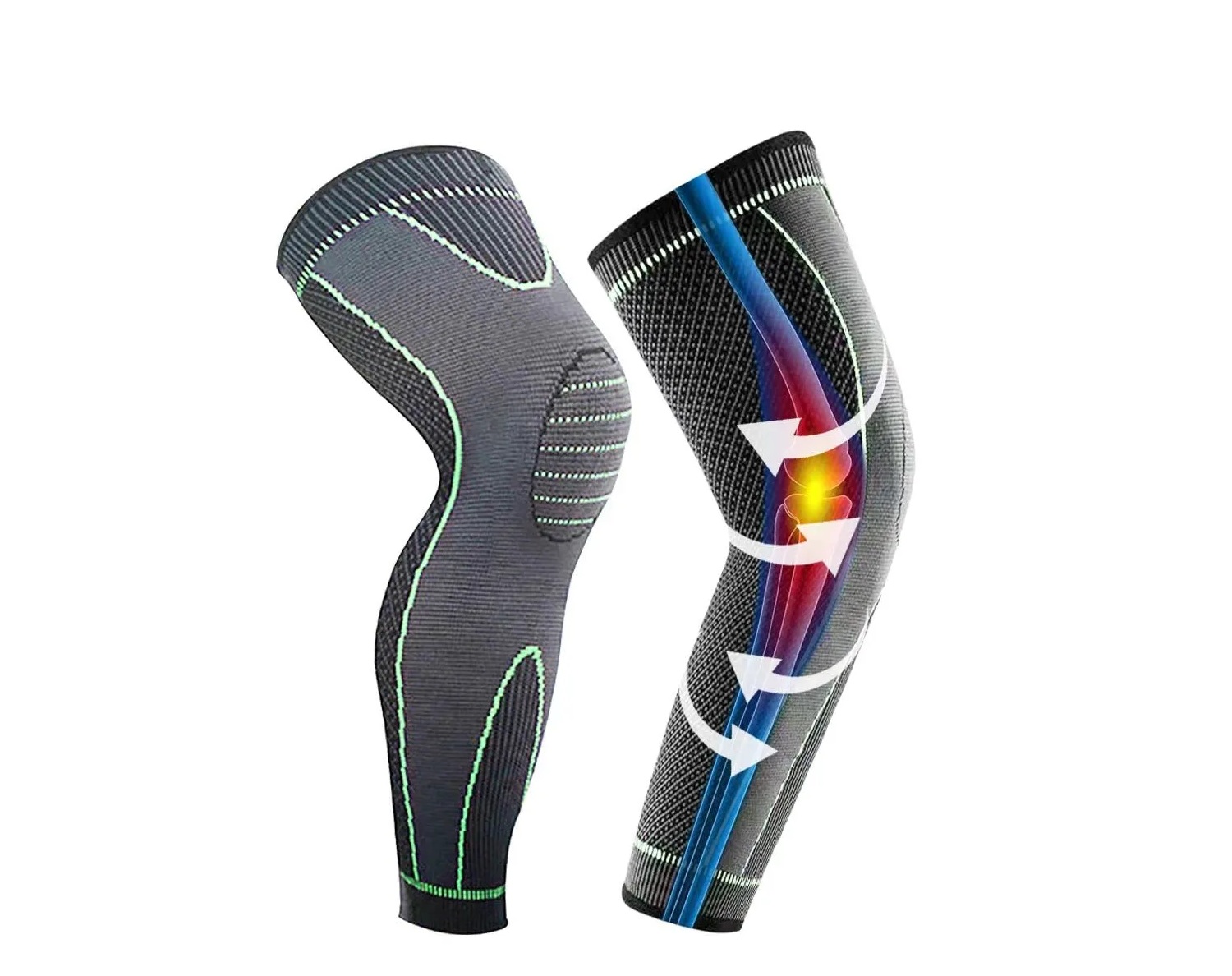 la rodillera de compresión y soporte de pantorrilla con excelente diseño de punto 3D proporciona un ajuste perfecto y protege tu muslo, rodilla y pantorrilla. Perfecto para cualquier temporada o entorno, interior o exterior. Elige las mangas, con suficiente apoyo para las articulaciones y protección muscular, previene eficazmente lesiones durante el ejercicio. Aumenta al instante tu rendimiento y confianza.