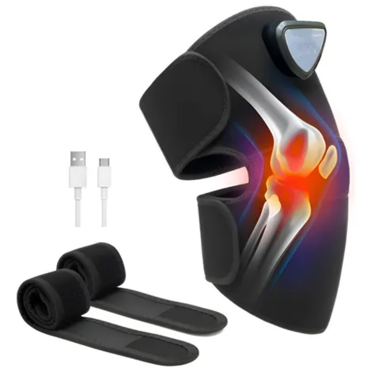Cuenta con 3 niveles de velocidad y temperatura, permitiendo ajustar la intensidad según tu necesidad. Su diseño ergonómico con correas ajustables se adapta cómodamente a la rodilla para un uso seguro y confortable.