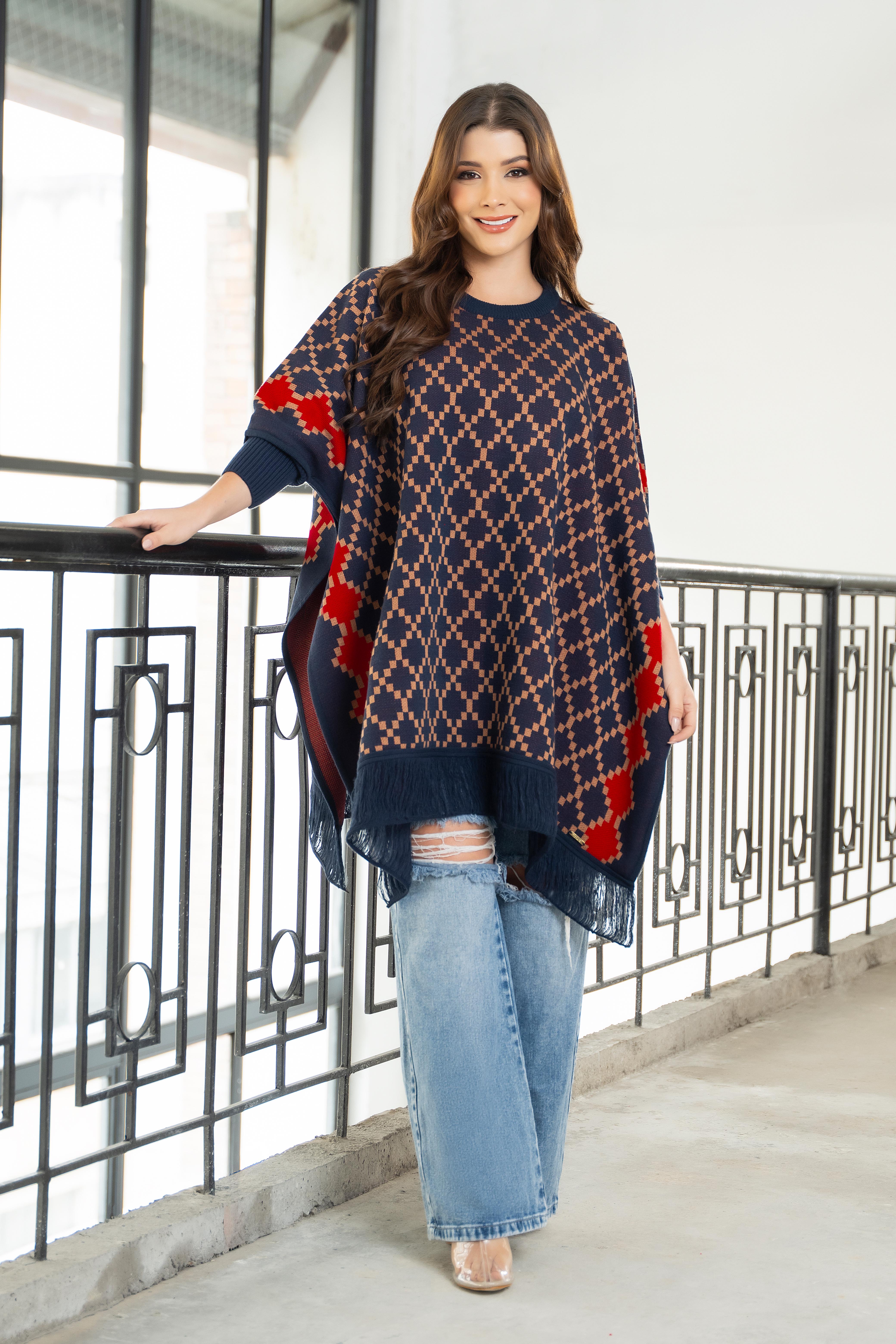 Esta referencia es una pieza que equilibra lo clásico y lo contemporáneo, ideal para quienes buscan una prenda con carácter y diseño geométrico. A diferencia de las ruanas lisas, esta destaca por su juego de patrones y texturas.