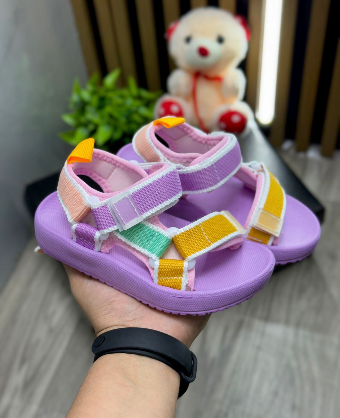 Estas sandalias infantiles combinan un diseño moderno con la máxima comodidad. Su base en tono rosa pastel ofrece una suela ligera, flexible y antideslizante, ideal para acompañar los pasos más activos. Las correas ajustables en tonos verde menta, rosa y blanco crean un contraste encantador y fresco, evocando la alegría del verano. Fabricadas con materiales suaves y transpirables, brindan un ajuste seguro gracias a su sistema de cierre con velcro, que facilita ponerlas y quitarlas con facilidad.