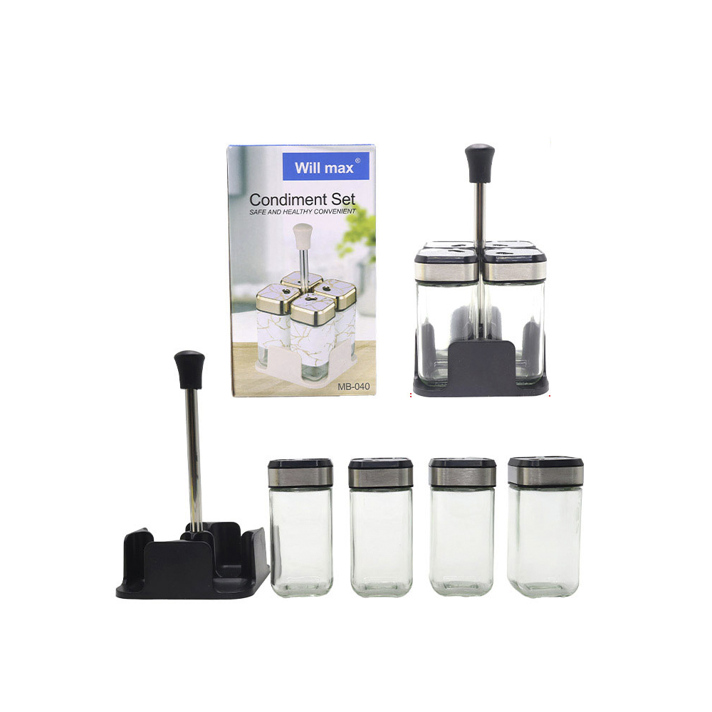 📋 DESCRIPCIÓN: SET DE CONDIMENTEROS X4 DE VIDRIO CON BASE ORGANIZADORA