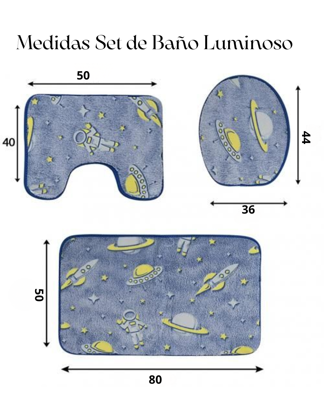 Dale un toque divertido y mágico al baño con este Set de Baño Luminoso, ideal para niños. Su diseño con figuras espaciales brilla en la oscuridad, haciendo el baño más entretenido y seguro.