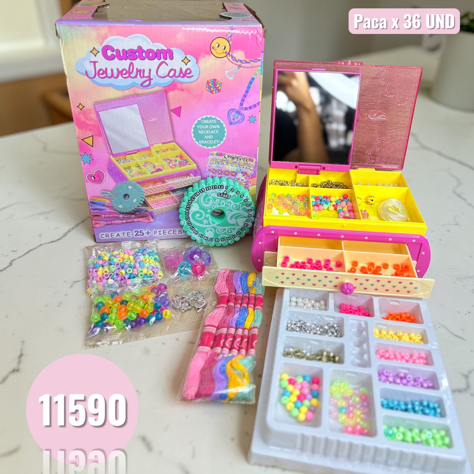 Material: Plástico (cuentas y caja) + hilo elástico