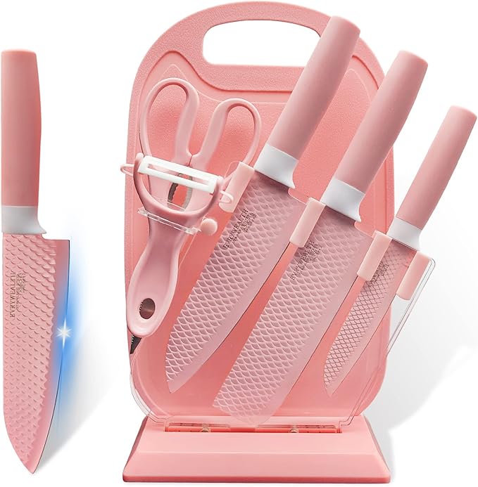 Regalo perfecto: el soporte acrílico de diseño elegante no solo almacena todos los cuchillos, sino que también ahorra espacio de almacenamiento. Diseño inferior antideslizante. Como una obra de arte, añadiendo un tipo diferente de brillo a tu cocina. Estos cuchillos son el regalo más adecuado, ya sea un regalo de inauguración de la casa o un regalo de vacaciones