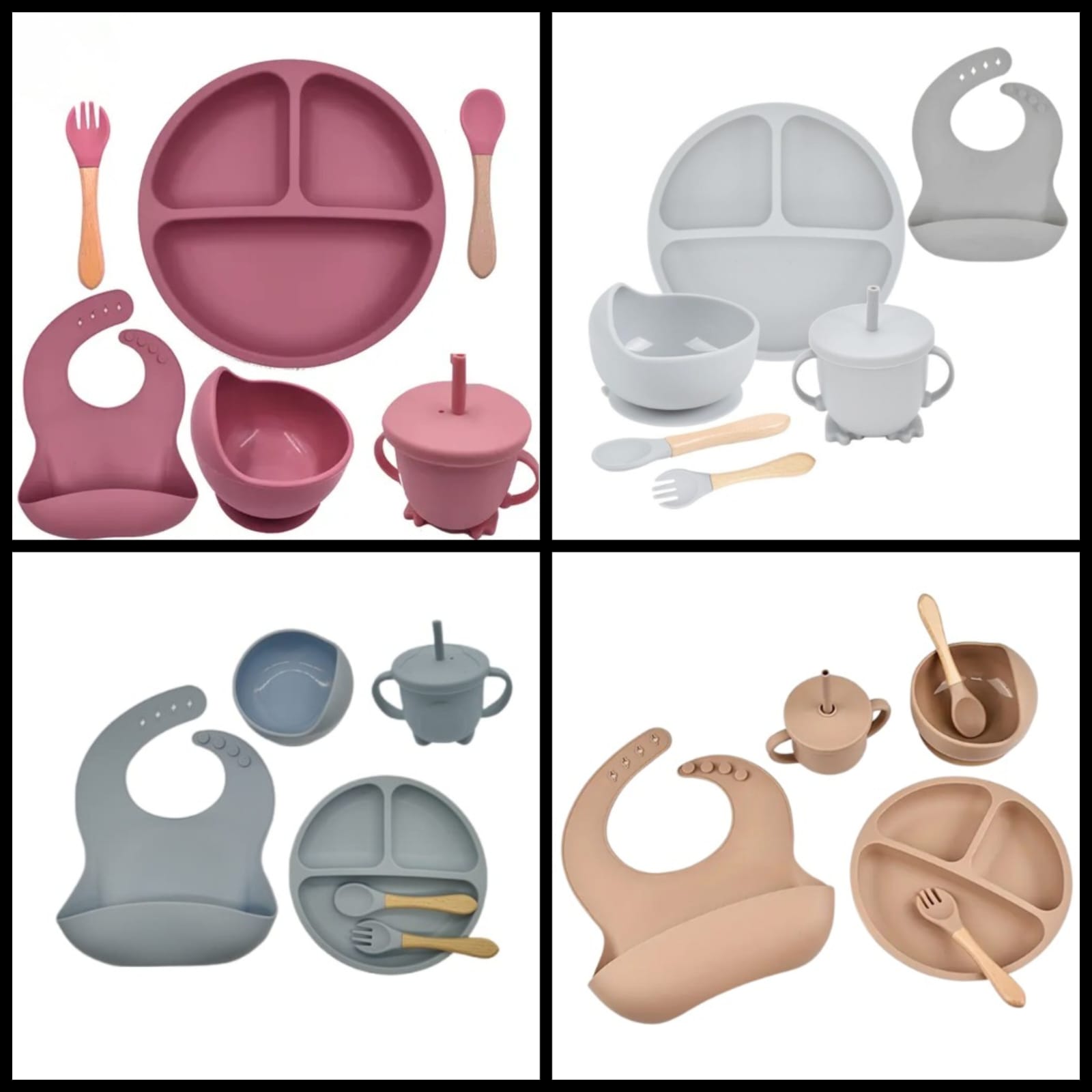 La vajilla de bebé de silicona está diseñada para acompañar las primeras etapas de alimentación infantil con seguridad, comodidad y diversión. Fabricada con silicona de grado alimentario, suave al tacto y libre de BPA, y sustancias tóxicas, ofrece una experiencia segura para el bebé y tranquilidad para los padres.