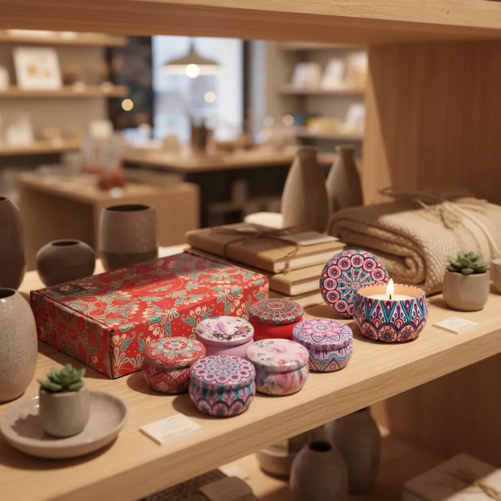 Disfruta de una experiencia sensorial única con este elegante set de velas aromáticas decorativas, presentado en una hermosa caja de regalo con diseño floral. Cada vela viene en una lata metálica reutilizable con patrones artísticos tipo mandala que aportan un toque sofisticado y colorido a cualquier espacio.