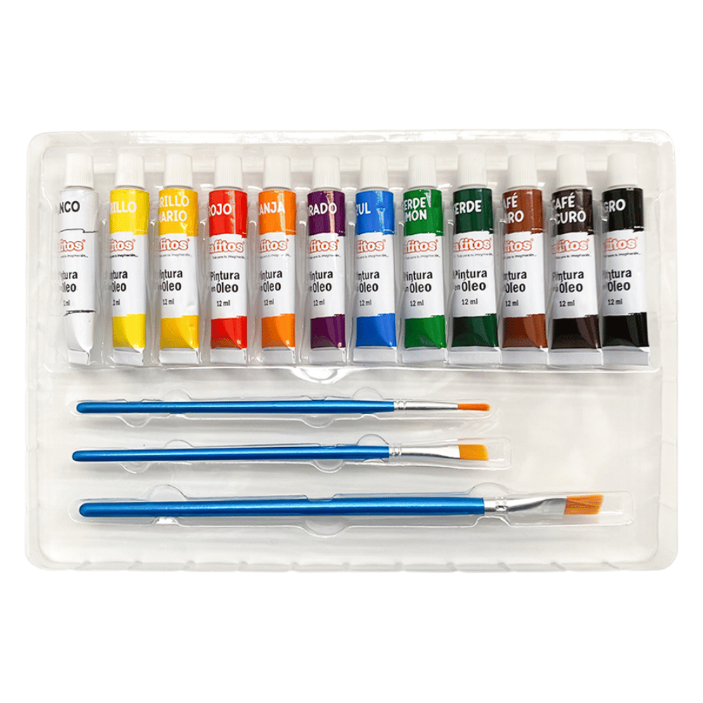 El kit contiene tubos de óleo en presentación práctica, mezclador plástico para combinar colores y pinceles para diferentes trazos y detalles. Perfecto para trabajos escolares, prácticas artísticas y proyectos creativos.
