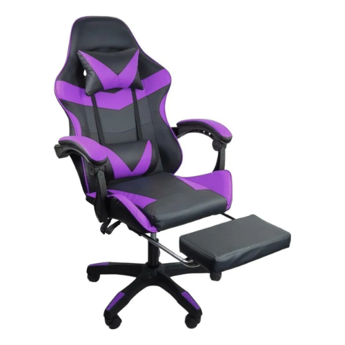 Silla tipo racing con diseño ergonómico, ideal para sesiones prolongadas de juego o trabajo. Tapizada en cuero sintético de alta resistencia en color negro con detalles Cuenta con: