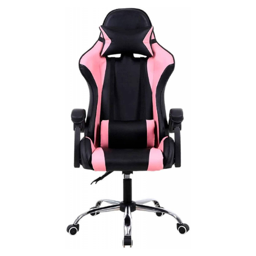 Silla tipo racing con diseño ergonómico, ideal para sesiones prolongadas de juego o trabajo. Tapizada en cuero sintético de alta resistencia en color negro con detalles Cuenta con: