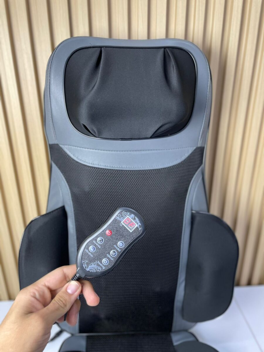Diseñado para proporcionar terapia de relajación y alivio muscular en espalda, cuello, hombros y zona lumbar. Este masajeador portátil puede colocarse sobre sillas o sillones, ofreciendo un masaje profundo mediante cabezales rotativos y vibración ajustable. Su mando de control permite seleccionar zonas específicas, intensidad y activación del sistema térmico, simulando la presión y movimiento de un masaje profesional.