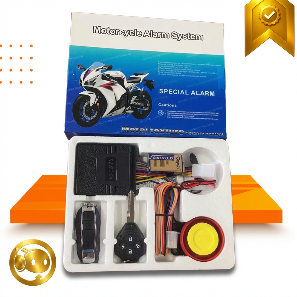 Alarma de proximidad SPY para moto 12V con sistema Code Hopping anti clonación y diseño hermético. Incluye función pánico y búsqueda, doble modo antiatraco/secuestro, rearmado automático al cerrar el switch y sensor de impacto interno ajustable desde el control. Kit completo con módulo central, 2 controles multifunción, 1 control de proximidad, sirena 12V, arnés con portafusibles y fusibles, correas plásticas y manual; mantiene la programación aunque se desconecte la batería.
