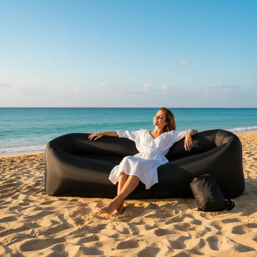 Disfruta del descanso donde quieras con el Sofá Inflable Portátil, el accesorio imprescindible para playa, camping, picnic, festivales o simplemente relajarte en casa.