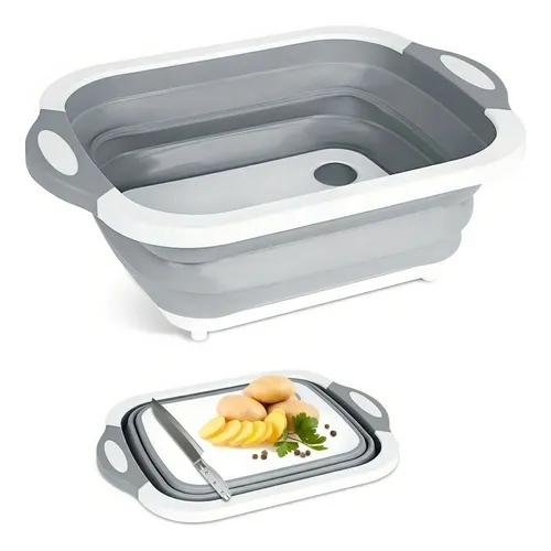 Funciones: Sirve como tabla para cortar, colador para lavar alimentos y recipiente de almacenamiento.