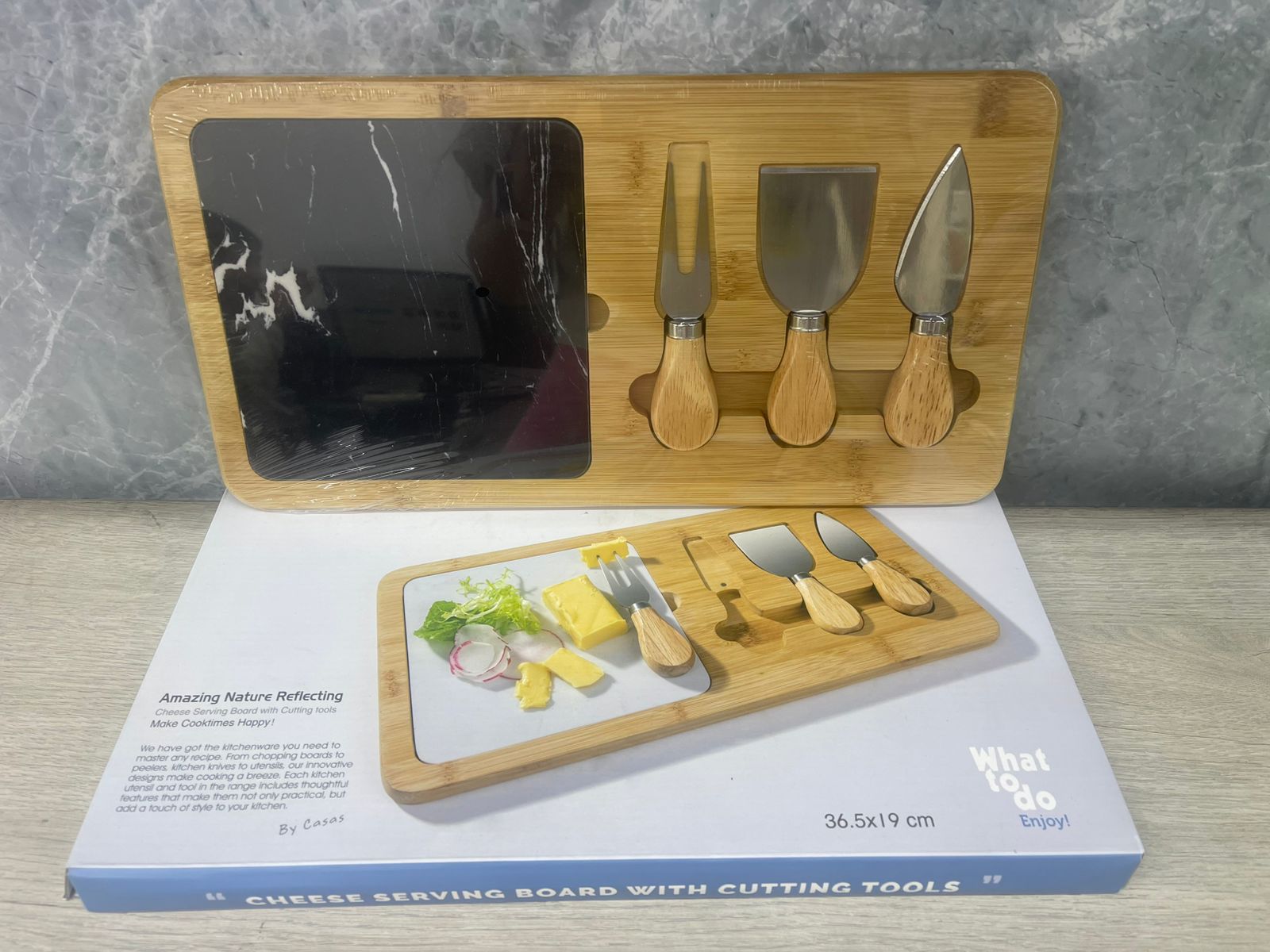 Tabla para Quesos con Accesorios, un complemento esencial para tus reuniones y celebraciones. Diseñada para presentar una variedad de quesos con estilo, esta tabla no solo es funcional, sino que también complementa la decoración de tu mesa. Fabricada con materiales de alta calidad, esta tabla ofrece un espacio ideal para exhibir desde los quesos más suaves hasta los más curados. Incluye accesorios que facilitan el corte y la presentación, permitiendo una experiencia gastronómica mucho más placentera y sofisticada. Perfecta para los amantes del queso, chefs amateur y anfitriones que buscan impresionar a sus invitados. Su diseño compacto permite un fácil almacenamiento, transformando cualquier reunión en un evento gourmet