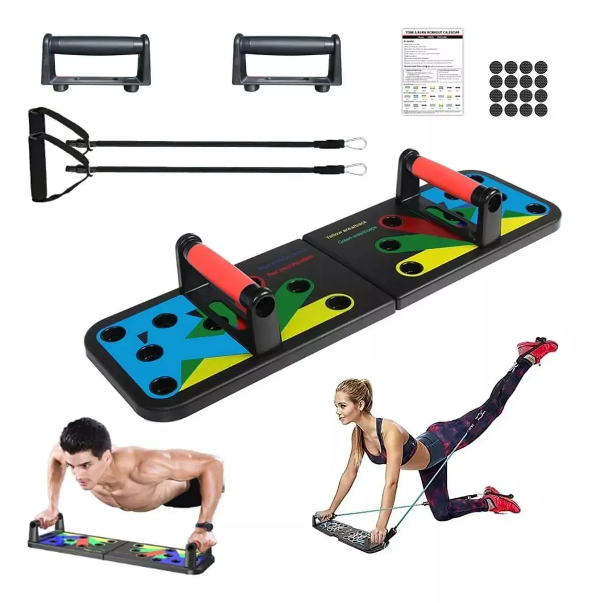 Lleva tu entrenamiento en casa al siguiente nivel con este sistema de flexiones codificado por colores. Diseñado para maximizar la definición de la parte superior del cuerpo y mejorar la resistencia, este tablero te permite trabajar ángulos específicos que las flexiones tradicionales no logran.