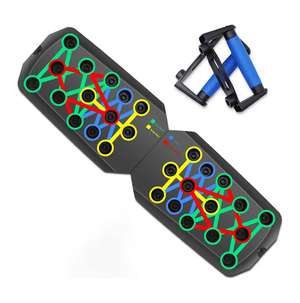 La Tabla de Ejercicio Multifuncional es una herramienta práctica y compacta diseñada para entrenar los principales músculos del tren superior. Sus ranuras codificadas por colores permiten variar la posición de las asas y enfocar el trabajo en pecho, espalda, hombros y tríceps.