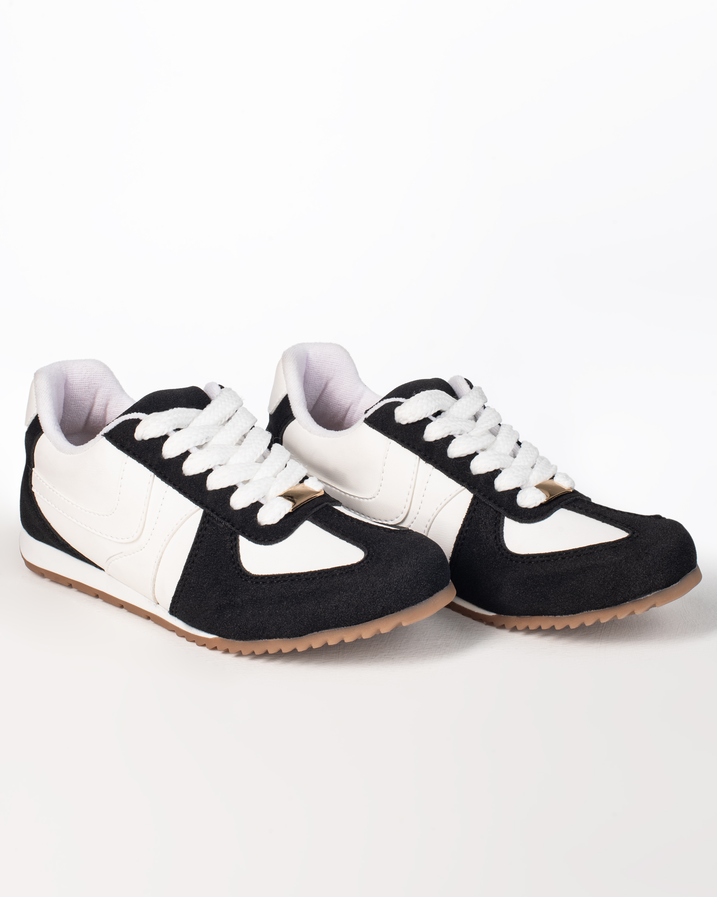 Un diseño tipo retro runner que mezcla texturas suaves con contrastes modernos, creando un tenis versátil, ligero y lleno de personalidad.