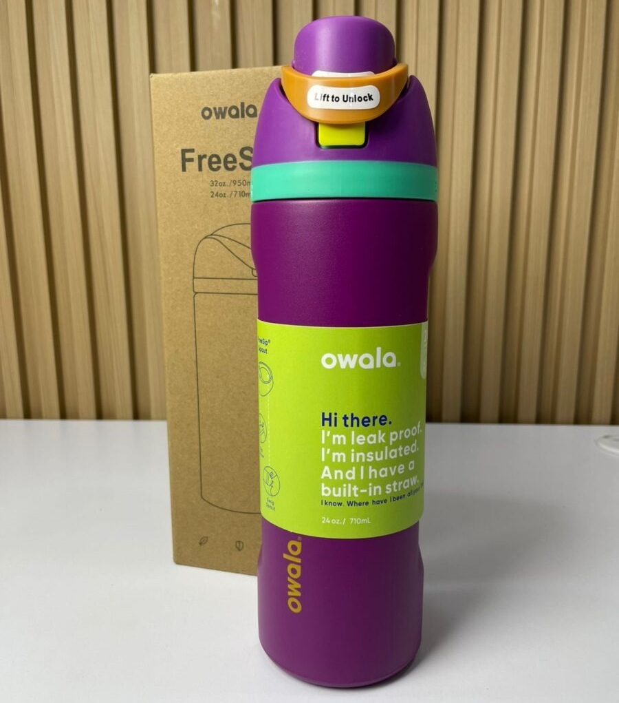 El termo Owala es un contenedor de hidratación de acero inoxidable con aislamiento térmico de doble pared, diseñado para mantener la temperatura de líquidos durante periodos prolongados. Incorpora un sistema de tapa con cierre seguro y un mecanismo integrado que permite beber mediante popote interno o mediante vertido directo. Su estructura está optimizada para evitar fugas, maximizar la retención térmica y garantizar una operación ergonómica y fiable en uso continuo.