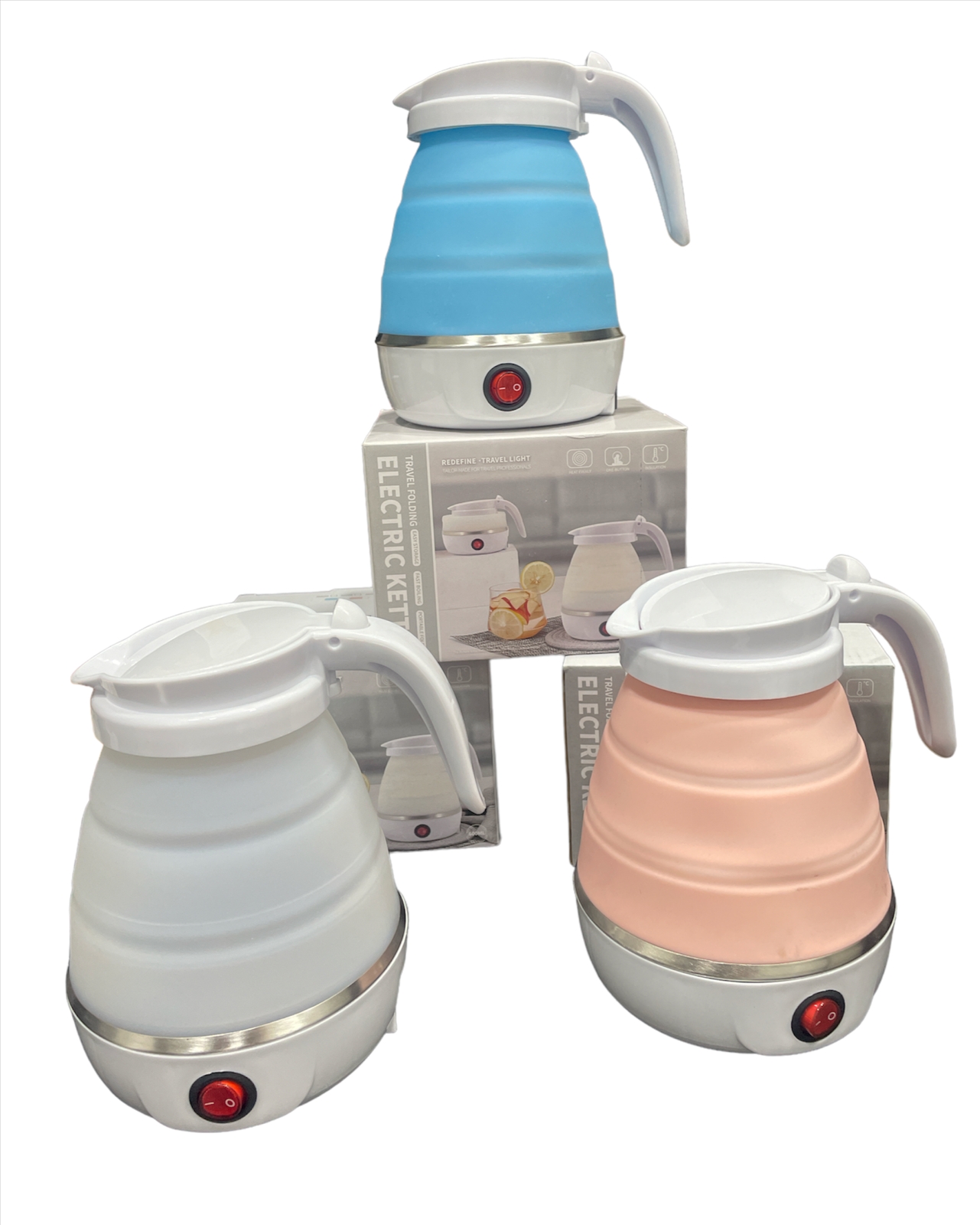 El Hervidor De Agua Electrico Plegable de color Azul Claro es un producto portátil y resistente a altas temperaturas, elaborado en silicona y acero inoxidable. Su diseño ultraligero y delgado permite que sea fácil de transportar y ahorra mucho espacio. Las dimensiones del producto plegado son de 16.5 x 14 x 11x5 cm y desplegado de 16.5 x 14 x 18 cm. Este hervidor de agua es ideal para diferentes ocasiones como un viaje, camping, glamping, oficina, hotel o donde quieras. Cuenta con un diseño de un botón, muy fácil de operar, simplemente pulsa el botón y luego el agua hervirá de 3 a 5 minutos. El cable del enchufe es desmontable y se puede quitar en cualquier momento cuando no se está utilizando.