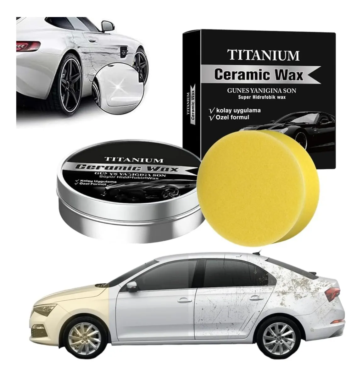 Fórmula Especial: Contiene una "Ozel formul" (fórmula especial) que promete una "Super Hidrofobik wax", lo que ayuda a repeler el agua y proteger la pintura contra líquidos y suciedad.