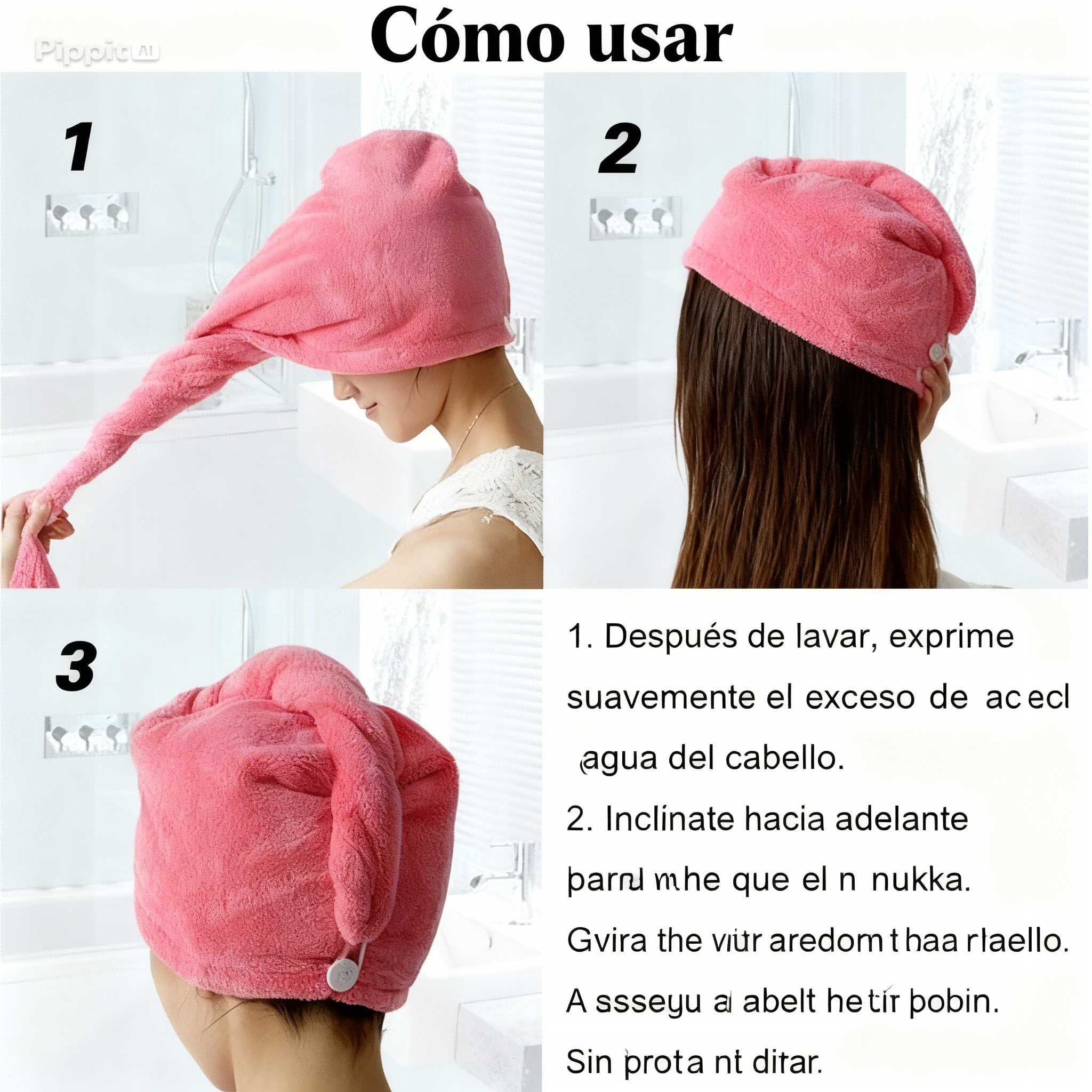 Gracias a su material ultra absorbente y ligero, esta toalla ayuda a reducir el tiempo de secado, evitando el uso excesivo del secador y protegiendo el cabello del calor.