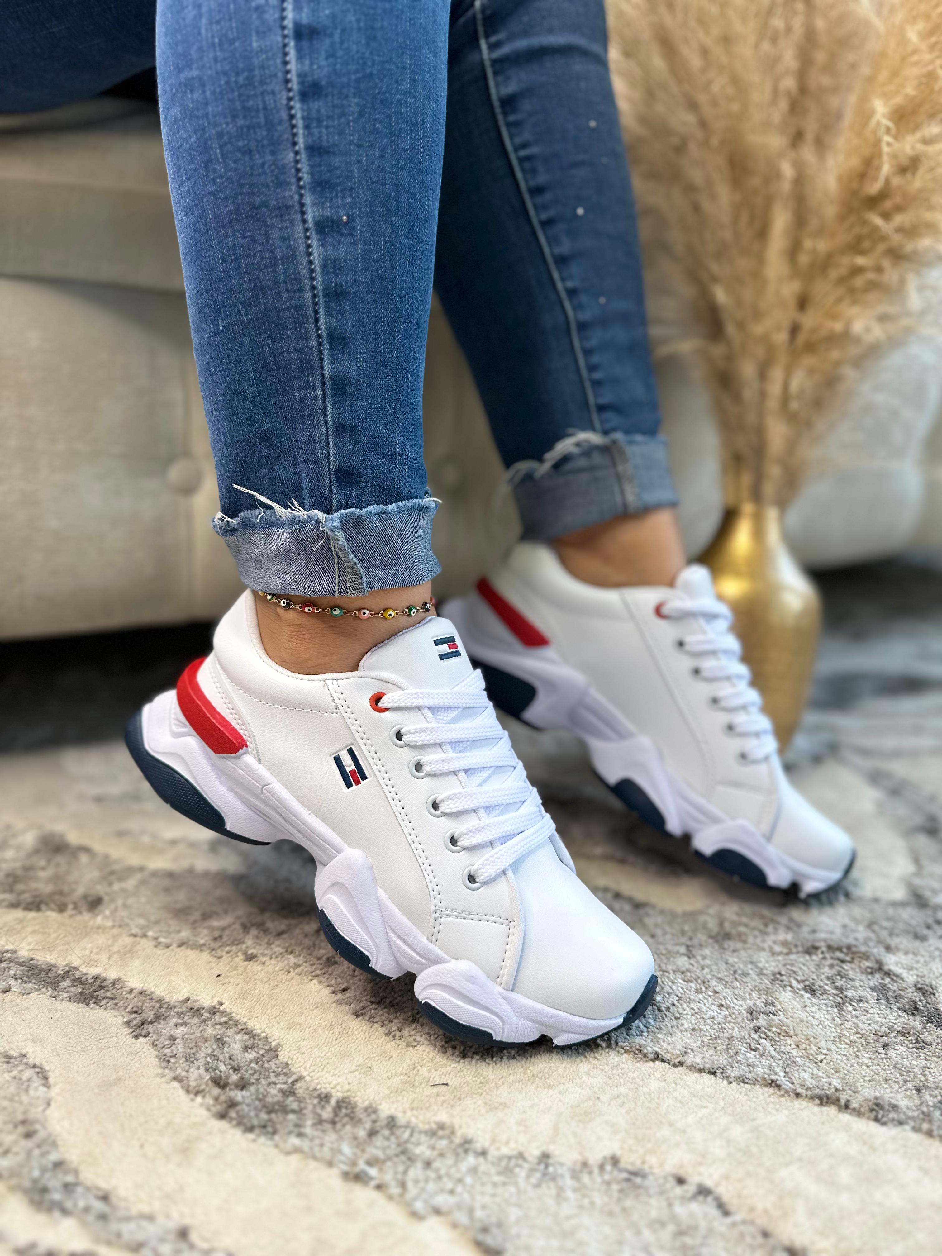 El Tommy Tractor destaca por su suela gruesa tipo tractor que ofrece excelente agarre y estabilidad en cualquier superficie 👣. Su estilo urbano y moderno lo convierte en el complemento ideal para looks fuertes y con actitud.