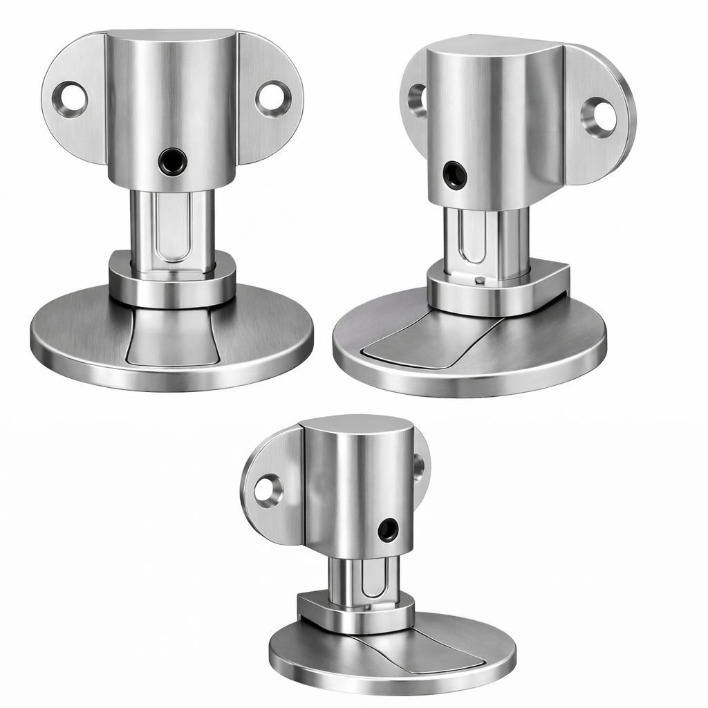 Es un tope de puerta fabricado en acero inoxidable con sistema magnético que evita que la puerta golpee la pared o se cierre bruscamente. Su imán mantiene la puerta fija cuando está abierta y la libera fácilmente cuando se desea cerrar.