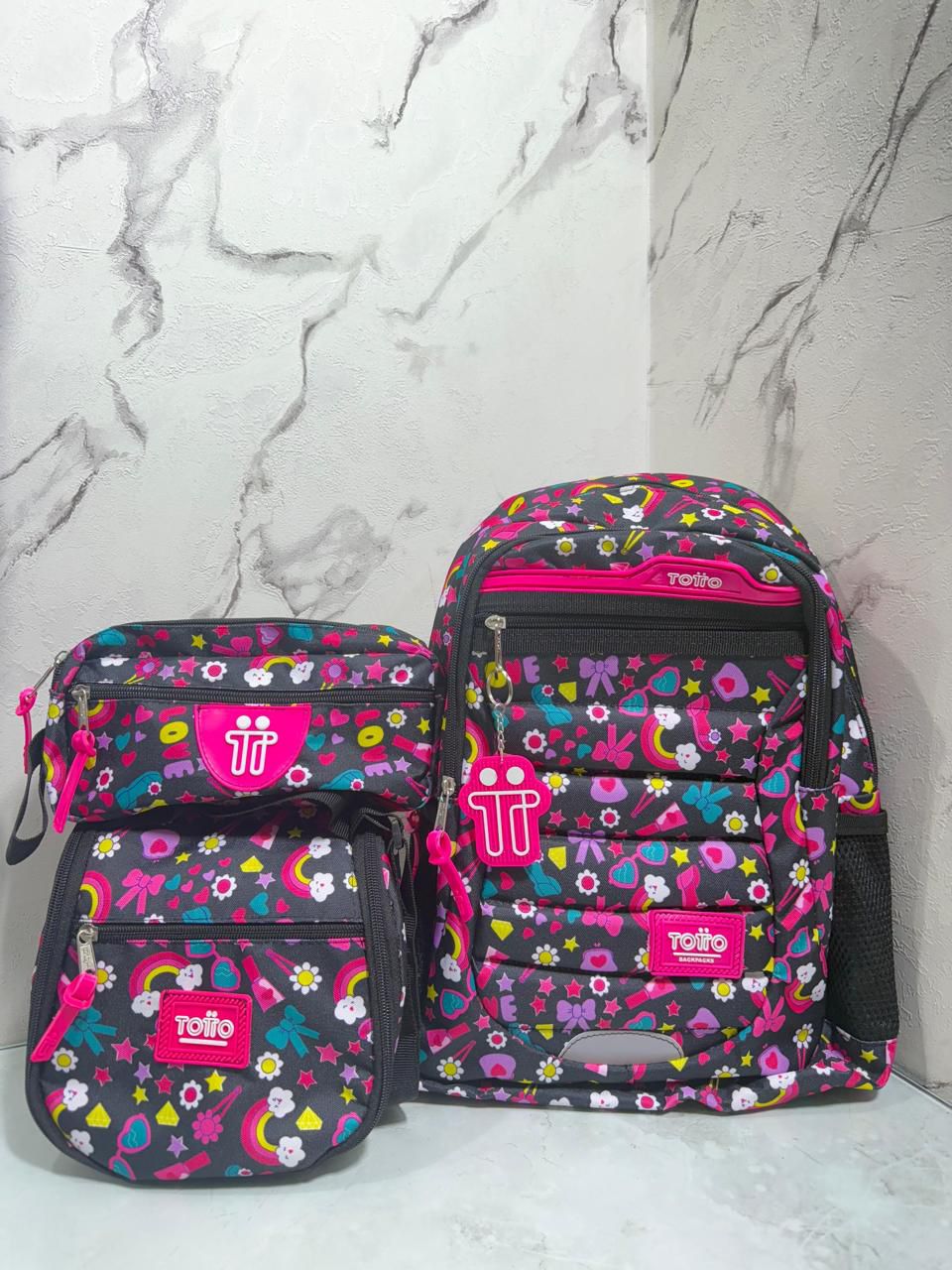 Set escolar completo, moderno y lleno de estilo 🌈😍. Ideal para el día a día, fabricado en lona resistente, con diseños llamativos y excelente capacidad para mantener todo organizado 📚✏️. Perfecto para el cole, salidas o actividades diarias 🏫💫.