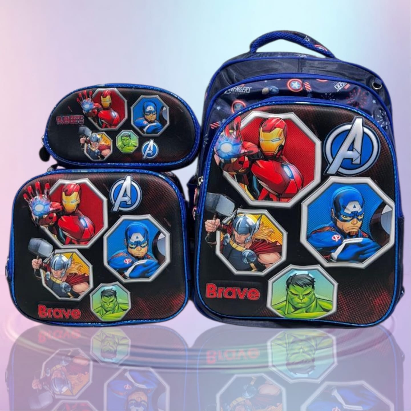 Incluye morral con 3 compartimientos y bolsillos laterales, lonchera termina y cartuchera, todos importados, de excelente calidad y con diseños infantiles modernos.