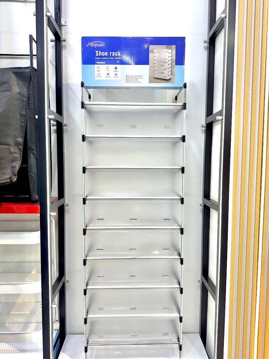 Zapatero metalico 9 niveles con diseño de solapa para protección contra el polvo.