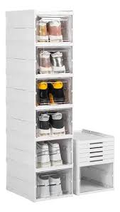 Este es un sistema de almacenamiento modular y apilable, ideal para organizar zapatos, ropa o accesorios en espacios reducidos. Las cajas están diseñadas con un cuerpo transparente y un frente ranurado, lo que permite identificar rápidamente el contenido y proporciona ventilación, manteniendo tus artículos visibles y ordenados.